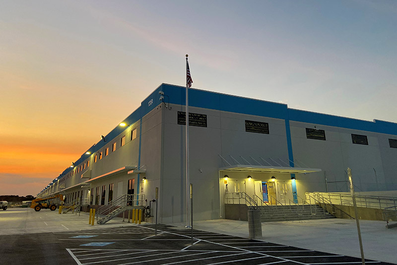 Haskell provided complete A/E design, construction project management, and self-performance of all concrete foundations, slab on grade, tilt-wall panel fabrication and erection, trench drain and retaining walls and ramps. Haskell Steel provided the joist, panel embeds, trench drain grating, metal stairs, canopy steel and miscellaneous steel for this project. A series of delays forced concrete work into winter, but Haskell worked successfully through a challenging season to keep the project on schedule. With each obstacle, the team was able to analyze the impacts, readjust their focus, implement a new plan and keep the project moving. This ultimately led to hitting all the project milestones on time, allowing the tenant to operate the facility in time for the holidays.
