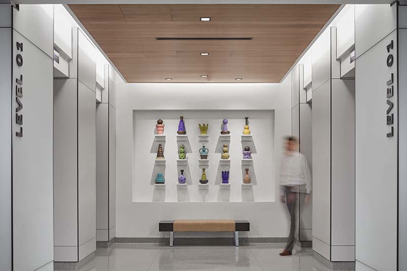 The building and site integrate major art pieces throughout as part of the patient healing experience. Our team members served on the Art Selection Committee with leaders of Baptist Health and community art representatives. Artwork procured from local artists provides positive visual distractions and is a part of the patient healing experience. The environmentally friendly space provides access to natural daylight and indoor plants to inspire healing. The courtyard offers natural respite, and a cafe serves nourishment for visitors. A chapel is also a part of the facility for those seeking restoration of spirit. This heroic space inspires a feeling of safe harbor for all who enter with the hope of healing and for the staff and physicians providing care.