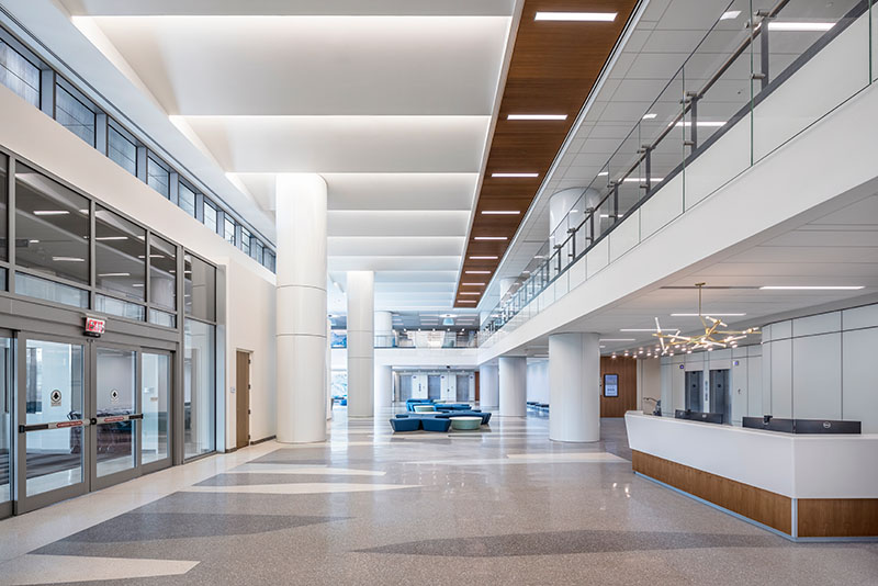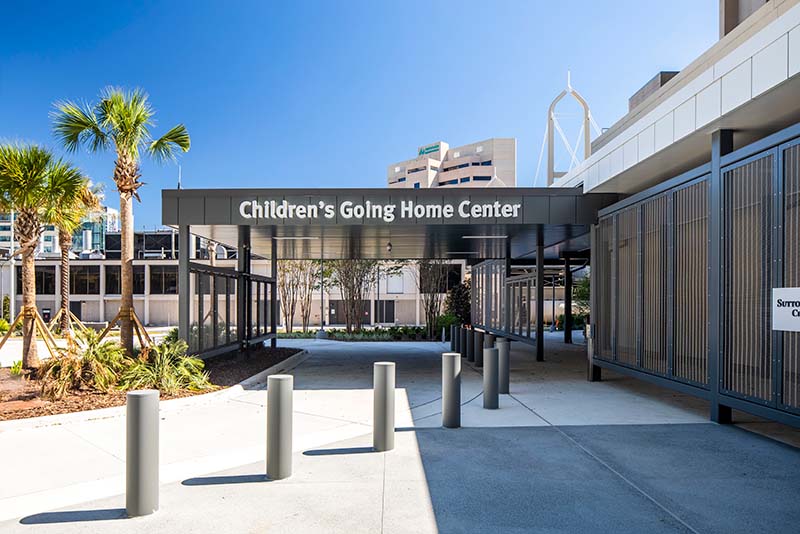 The new building is approximately 228,000 square feet and houses a two-level grand lobby, as well as 75 private NICU beds and 50 private PICU patient rooms, each with family rooming areas. Additionally, the building is topped with a major mechanical penthouse, including significant IT infrastructure. The building closely ties to the existing Wolfson Children’s Hospital, linking directly at floors one through five. It also abuts and connects to the Pavilion Building that houses the newly renovated labor and delivery rooms and postpartum unit on three levels.