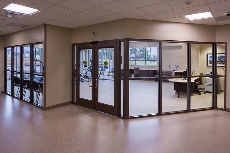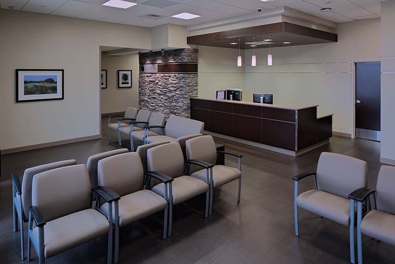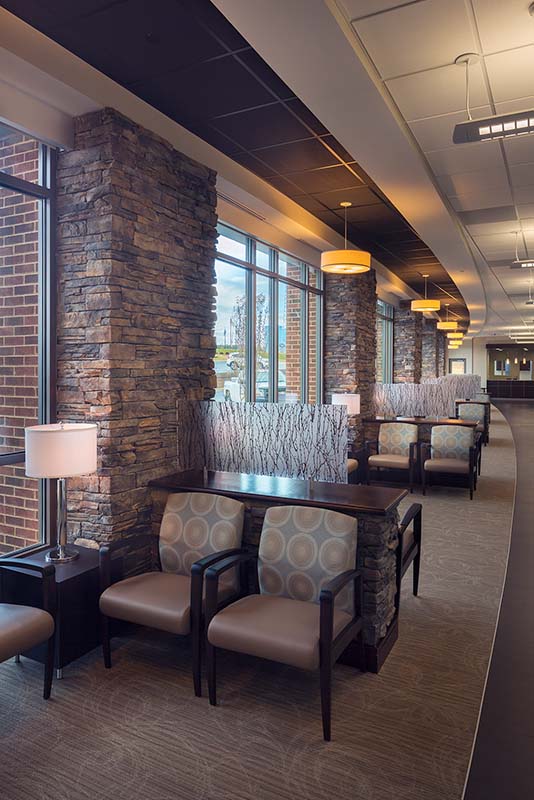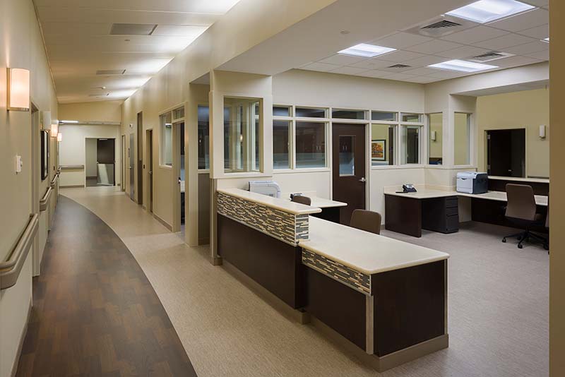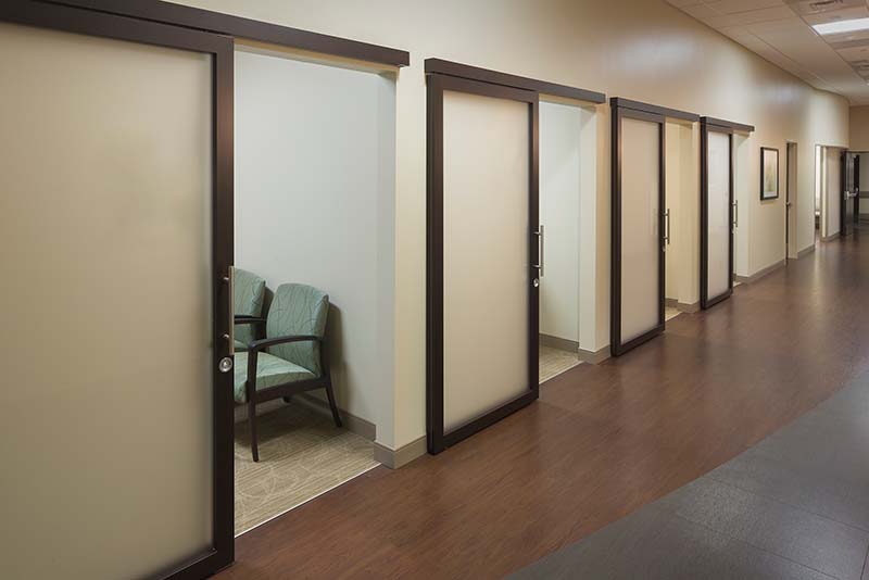 The outpatient portion of the project includes a primary care and rotating specialty clinic with 22 exam rooms plus echo and echo stress. Patients can participate in cardiac rehabilitation and physical therapy programs in the onsite gym.