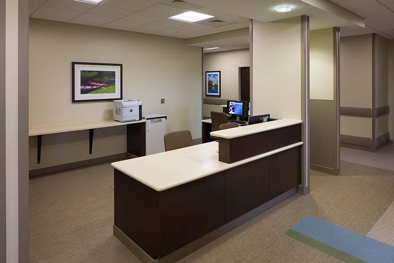 The new 50,000 sf facility is divided into two occupancy categories under one roof. The I-2 occupancy housing the emergency department is separated by a 2-hour smoke wall from the outpatient clinic under the Business occupancy side. Although separated by occupancy type and administratively with respect to reimbursement rates, provisions have been made for convenient access to several imaging modalities to both ED and MOB patients all within the same facility.