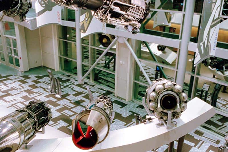 The 300-acre Ohio campus of GE Aviation (GE) hadn’t seen new construction for decades. The aging facilities certainly didn’t reflect their industry leadership. When Haskell was selected to design the campus’ new gateway learning center, the result was a 50,000-square-foot structure with a breathtaking interior that features a historic engine display hanging in midair.
