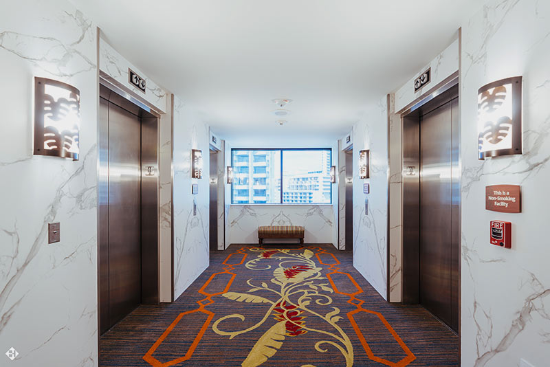 This project required significant planning and coordination with the owner. The renovations occurred while keeping half of the hotel in full operation while sharing a common core and elevator bank area. This was accomplished with the use of physical barricades and signage provided in multiple languages.