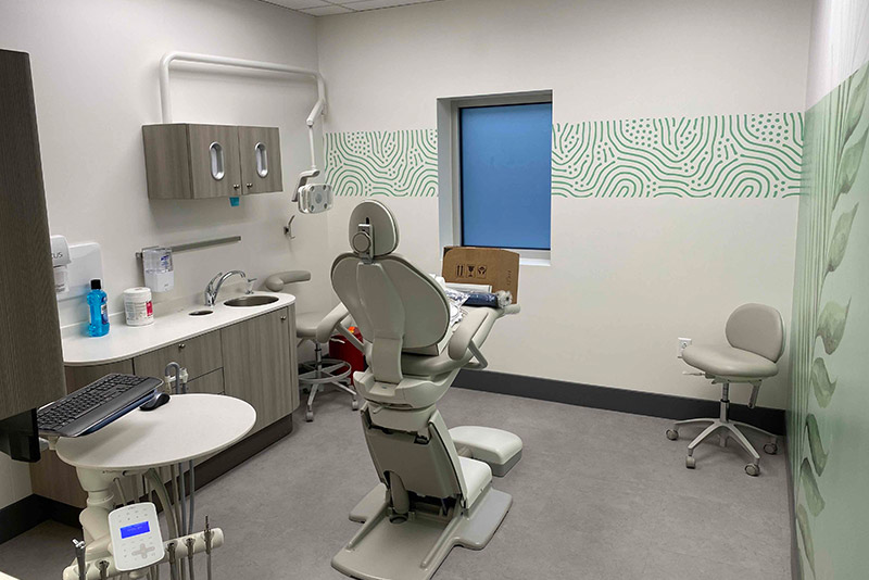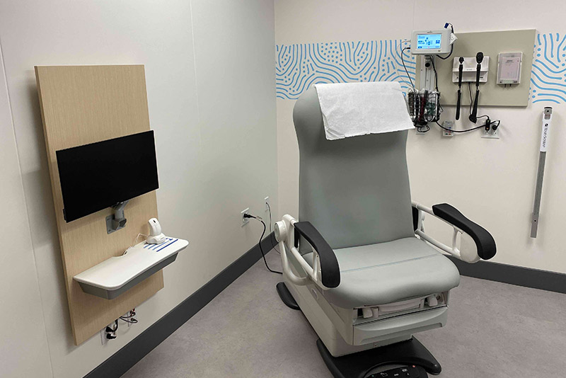 The 7,500-square-foot clinic includes dental, medical, audiology, and vision bays along with an X-ray exam room. The Newnan, Georgia, clinic was completed in less than four months. It was the first built in partnership with BLOX.