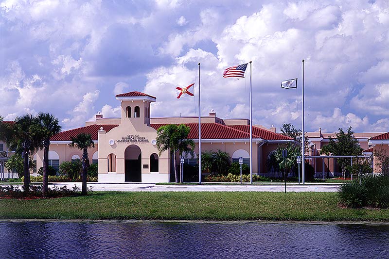 After Pembroke Pines recovered from Hurricane Andrew, it had a new problem. Residents fled the decimated area to the south for the already-full Broward County. With the local school board unable to accommodate growth, city leadership — in collaboration with Haskell — set about designing and building a system of city-owned charter schools. The plan was for a true academic village and incorporated a public library and college satellite campus.