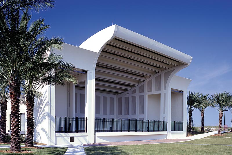 The unique gathering place functions as a town center for the area — part public park, part festival location and part concert venue. Built to last, the Sea Walk Pavilion can withstand year after year of harsh exposure to destructive sand and salt. Haskell completed the durable structure within four months and under budget.