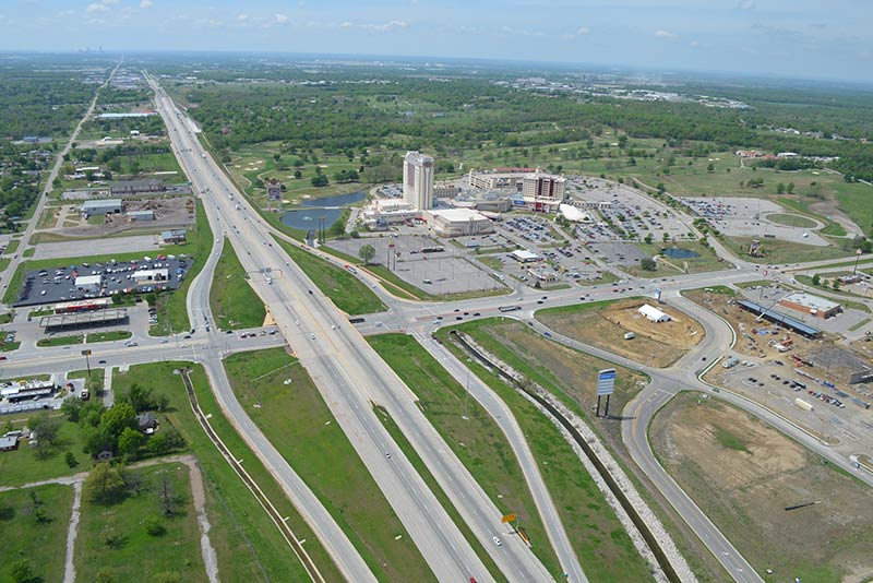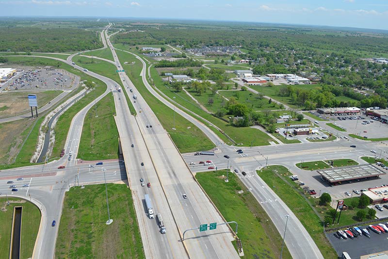 Traffic engineering services included traffic data collection, balancing and future projections, simulation modeling, crash analysis, signal design and optimization, synchronization timing plans, signal layout plans, Americans with Disabilities Act (ADA) compliant pathways, interchange lighting design and plans, signing plans, pavement marking plans, traffic control plans and Intelligent Transportation Systems (ITS) and CCTV cameras for traffic monitoring. Bi-weekly stakeholder meetings were conducted throughout with the Oklahoma Department of Transportation (ODOT), Federal Highway Administration (FHWA), Cherokee Nation, the cities of Tulsa and Catoosa, and Tulsa, Wagoner and Rogers counties. Aesthetic enhancements were developed in coordination with Oklahoma’s art in public spaces and the Cherokee Nation. Aesthetic enhancements for the corridor were developed in coordination with Oklahoma’s art in public spaces and the Cherokee Nation.